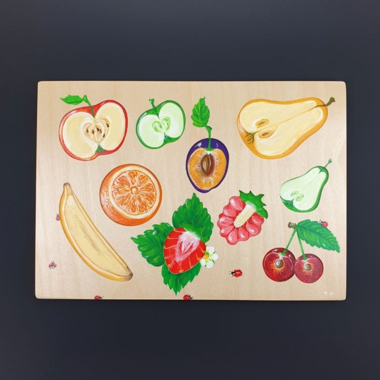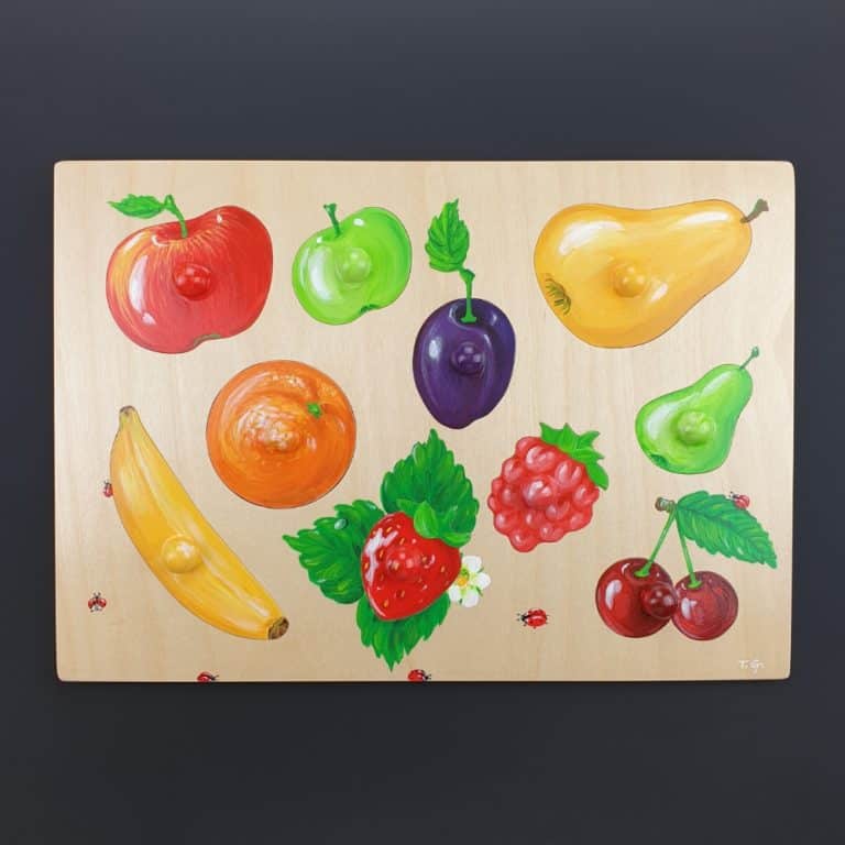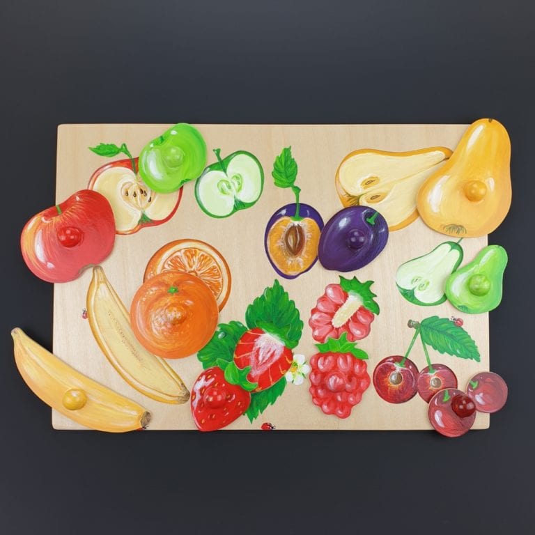 Realistic wooden puzzle - removable fruits