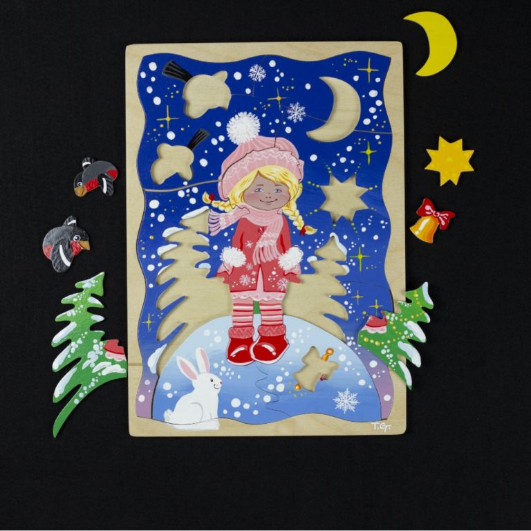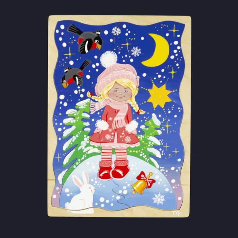 Šī koka puszle ir ideāli piemērota, lai īstenotu attīstības spēļu principu "solīti pa solītim" – sākumā izņemot mazās detaļas, un vēlāk pakāpeniski pārejot uz lielākām daļām, ļaujot bērnam veidot mozaīku patstāvīgi. Meitenīte, kas kalpo kā centrālais tēls, palīdz bērnam orientēties rāmī. Turklāt katra puzlīte ir unikāli apgleznota ar roku, padarot katru izstrādājumu īpašu.
