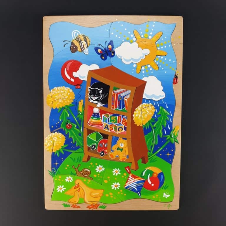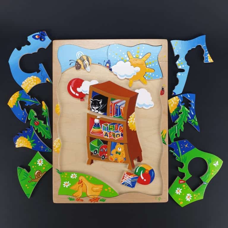 Centrālais tēls – skapis – kalpo kā orientieris, kas palīdz bērnam saprast puzles struktūru. Katrs puzles gabaliņš ir apgleznots ar roku, padarot katru skapi unikālu un oriģinālu.