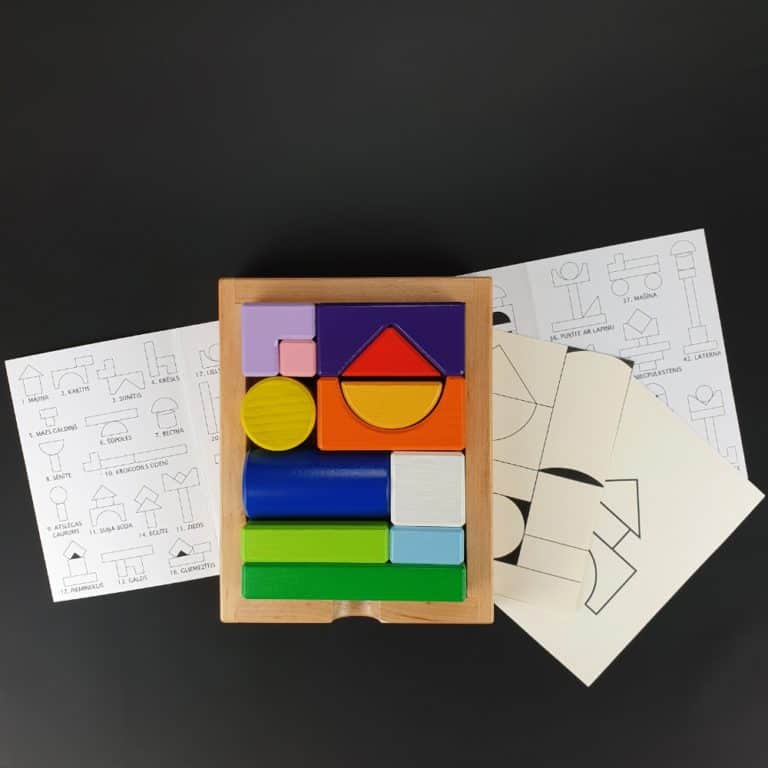"Mazais koka konstruktors" ir krāsains un aizraujošs komplekts, kas sastāv no 12 dažādas formas figūrām. Šis konstruktors palīdz bērniem attīstīt loģisko domāšanu, kustību koordināciju, fantāziju un spēju "lasīt" plānus un shēmas. Komplektā ir iekļauti uzdevumi, kas soli pa solim ved bērnu no vienkāršā uz sarežģīto.