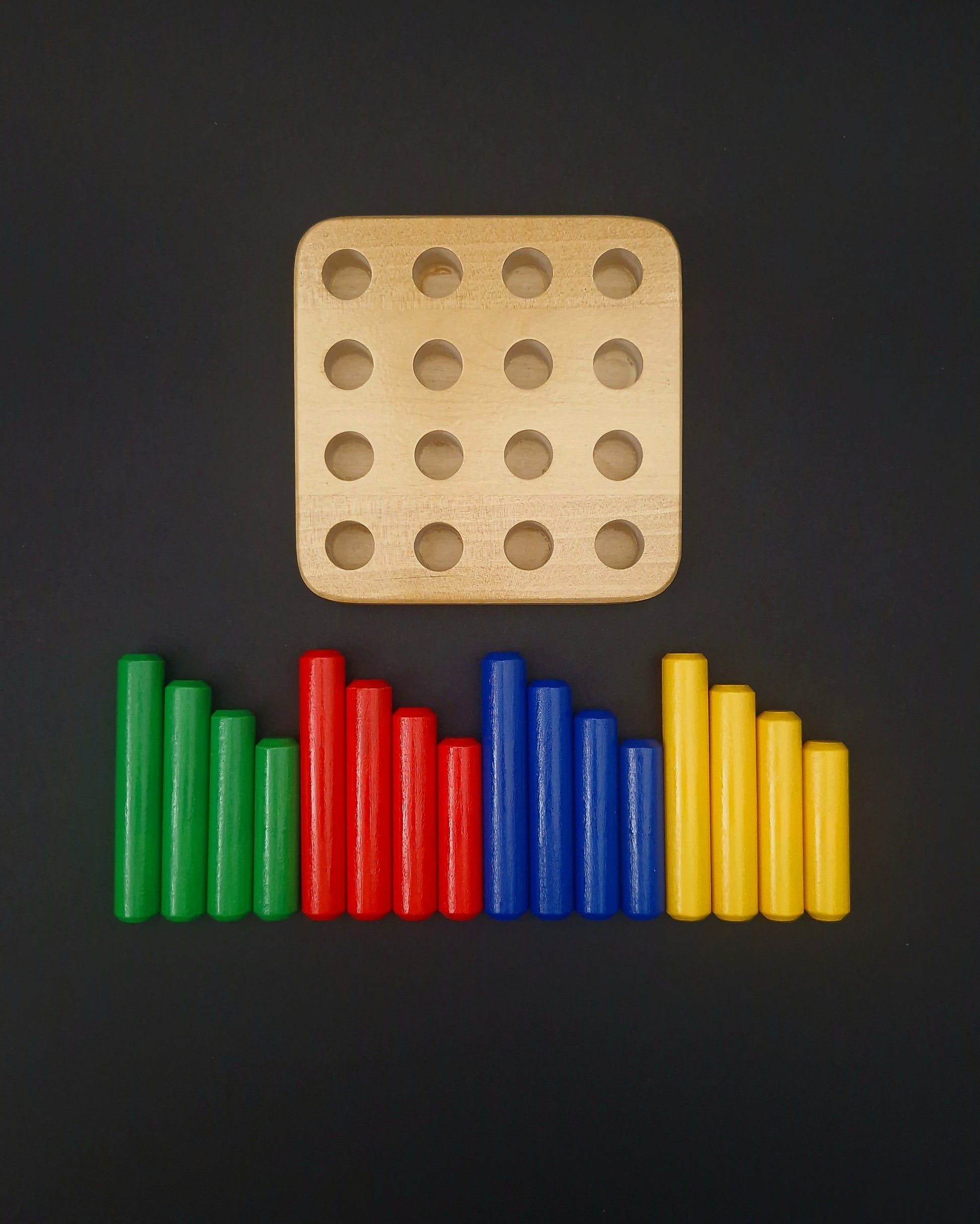 16 kociņi - Minhenes funkcionālās attīstības diagnostikas testa materiāli.