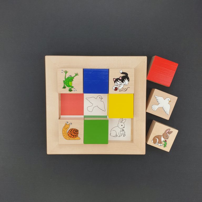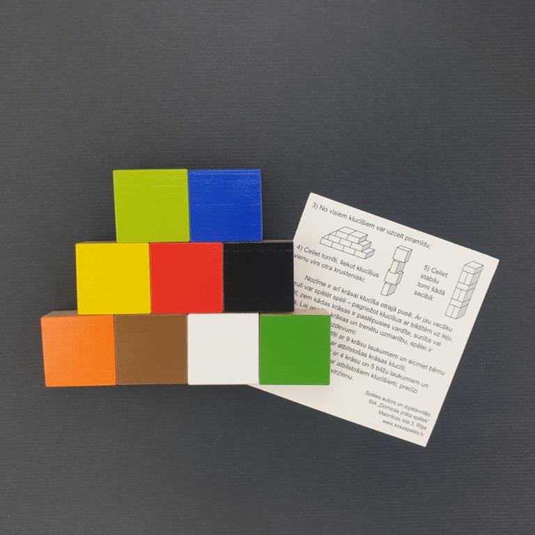 Krāsu identificēšana ir svarīga šajā spēlē. Ar vecākiem bērniem var spēlēt spēles, kas ietver krāsu atpazīšanu un uzmanības treniņu. Piemēram, pagriežot klucīšus ar attēliem uz leju, bērns var minēt, zem kādas krāsas ir paslēpusies noteikta dzīvnieciņa. Papildus uzdevumi ietver krāsu laukumu aizklāšanu un attiecīgu klucīšu izvēli, kas palīdz apgūt krāsas un precizitāti.