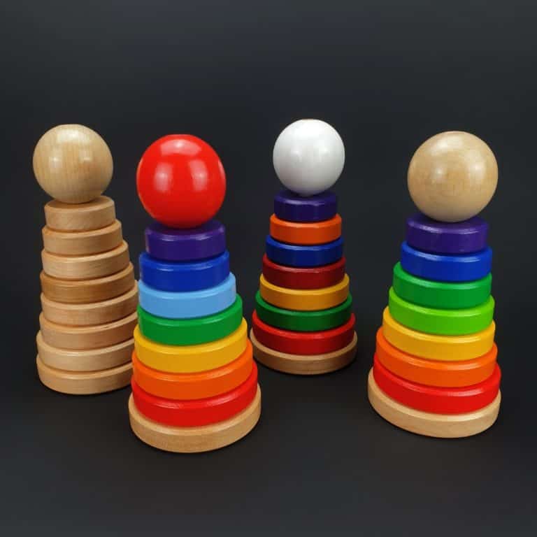 Koka piramīda ir ļoti svarīga rotaļlieta bērniem vecumā no 1 līdz 2 gadiem, kas palīdzēs mazulim iemācīties krāsas, trenēt acumēru un apgūt jēdzienus kā “mazs”, “liels”, “lielāks” un “vislielākais”. Šī rotaļlieta attīsta smalko pirkstu muskulatūru, satvēriena un rokas kustību precizitāti, kā arī acu un roku sadarbību.