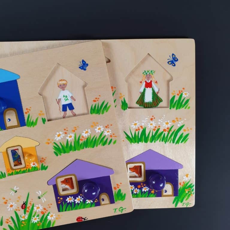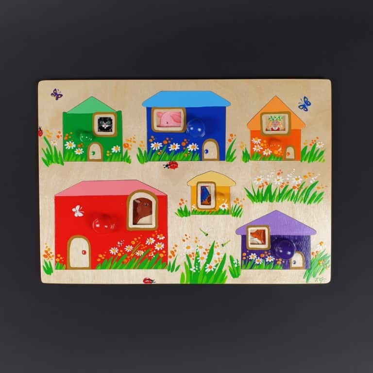 Šī koka rotaļlieta ir izstrādāta, lai veicinātu bērnu valodas attīstību un roku veiklību. Spēle māca bērniem, kā pareizi izmantot pincetes satvērienu, izņemot un liekot atpakaļ formā dotās figūras. Darbojoties ar šo rotaļlietu, bērns attīsta smalko pirkstu muskulatūru, kustību koordināciju, loģisko domāšanu un pacietību.