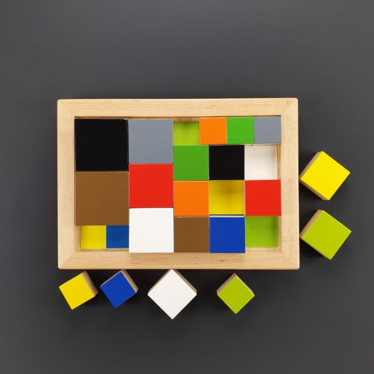 Koka klucīšu puzles spēle - Bilžu Krāsu klucīši