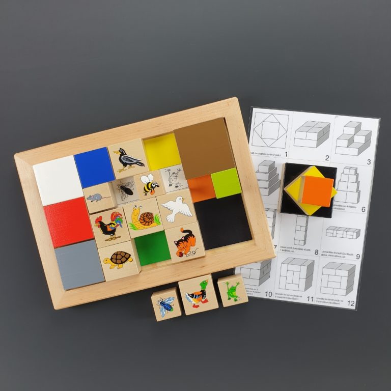 Šī unikālā koka klucīšu spēle ir perfekta puzle loģiskās domāšanas, salīdzināšanas prasmes, acumēra un pacietības attīstīšanai, kā arī palīdz apgūt krāsas, uzlabot kustību koordināciju, telpisko domāšanu, uzmanību un atmiņu. Bet pats svarīgākais - šī koka spēle sagādās bērnam prieku! Lai gan bērni var spēlēties paši, vecāku iesaistīšanās padara šo pieredzi vēl vērtīgāku. Spēli var padarīt interesantāku, izmantojot komplektā iekļautās uzdevumu kartītes. Klucīšu salikšana atpakaļ kastītē bez parauga nemaz nav tik vienkārša!