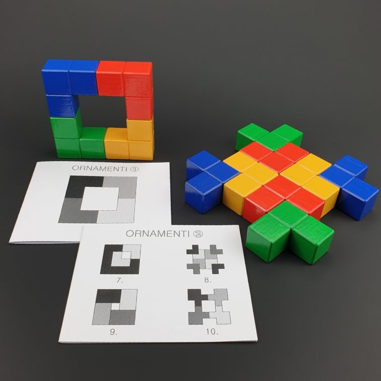 Spēles komplektā ir arī 28 ornamentu uzdevumu paraugi, kas arī veidoti pakāpeniski no vienkārša uz sarežģīto. Pirmie uzdevumi būs piemēroti 3 gadus veciem bērniem, bet sarežģītākie uzdevumi interesēs pat pieaugušos. Pieaugušajiem ir īpašs uzdevums – cik ilgs laiks būs nepieciešams, lai no 9 spēles detaļām saliktu kubu, kas daudziem ir īsts izaicinājums.