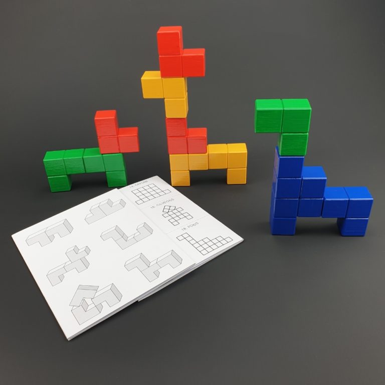Šī koka klucīšu spēle sastāv no 12 vienādām figūrām, krāsotām četrās krāsās (sarkanā, zilā, dzeltenā, zaļā) un piedāvā dažādus uzdevumus bērnu attīstībai. Tā palīdz attīstīt kustību koordināciju, tēlaino un loģisko domāšanu, kā arī radošumu un konstrukciju veidošanas prasmes.