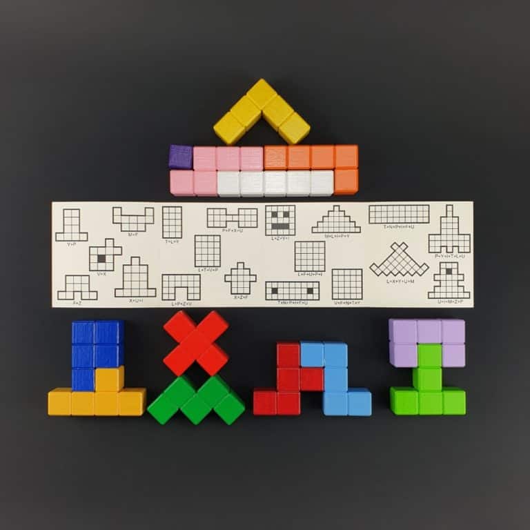 “Pentamino” komplektā iekļautas divas uzdevumu grāmatiņas: viena bērniem un skolniekiem, kurā uzdevumi sakārtoti no vienkāršākajiem līdz sarežģītākajiem, un otra – pieaugušajiem, kurā iekļauti īpaši izaicinoši uzdevumi. Papildus komplektā ir trešā grāmatiņa ar visiem uzdevumu risinājumiem, kas palīdzēs, ja šķitīs, ka uzdevumi ir pārāk grūti.