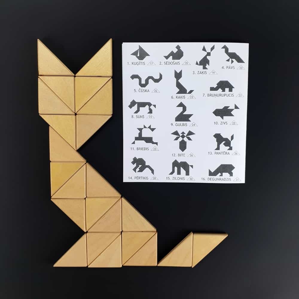 ŠĪ koka trīsstūru puzle ir oriģināla spēle ar bagātīgu metodiku, radīta, lai attīstītu loģisko domāšanu, kombinēšanas spējas, iztēli un fantāziju.