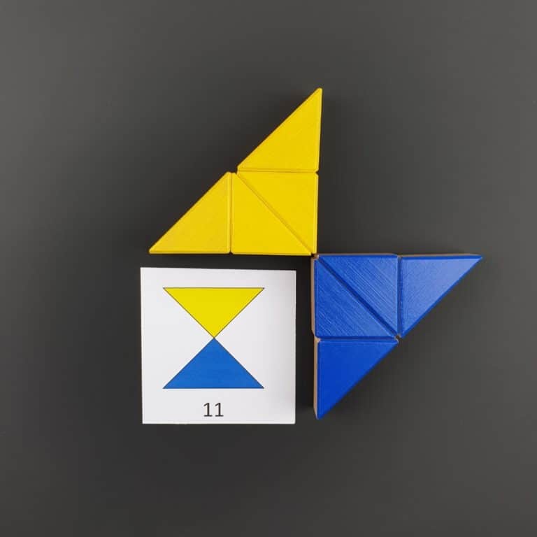 Дети помладше (3-4 года) могут располагать треугольники прямо на рисунке, а дети постарше решают задания, держа образец рядом с собой. Родителям рекомендуется набраться терпения и воздержаться от предложения помощи до того, как ребенок попытается решить задачу самостоятельно. Когда задача успешно решена, малыш заслуживает похвалы за то, что он сделал!