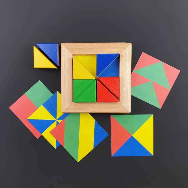 Этот, казалось бы, простой набор треугольников – отличная возможность для родителей и педагогов проверить логическое мышление ребенка, навыки сопоставления, умения и остроту зрения. В наборе 22 красочных рисунка с заданиями, которые расположены от самых простых к самым сложным.