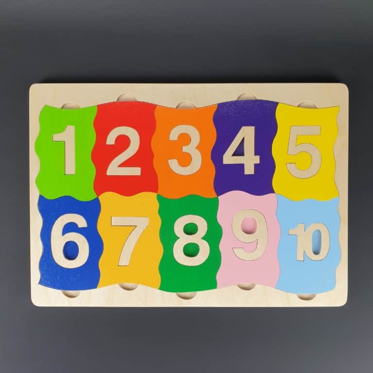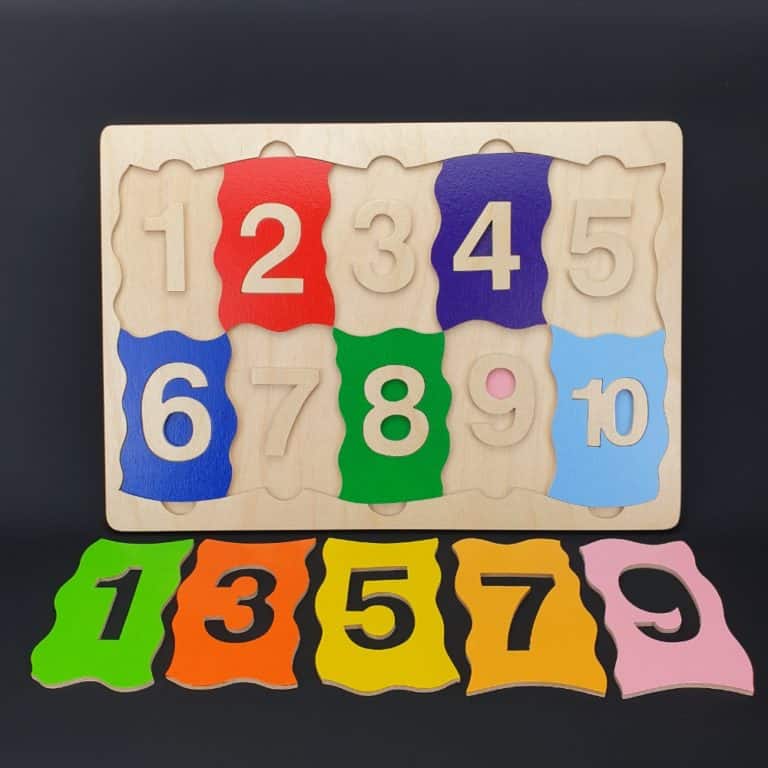 Этот обучающий инструмент предназначен для детей в возрасте от 2 лет и помогает им легко и с удовольствием освоить навыки распознавания чисел и счета. Дети учатся называть числа, расставлять их по порядку от 1 до 10 и обратно. Каждую цифру можно прощупать и обвести карандашом с помощью маркера в форме цифры.